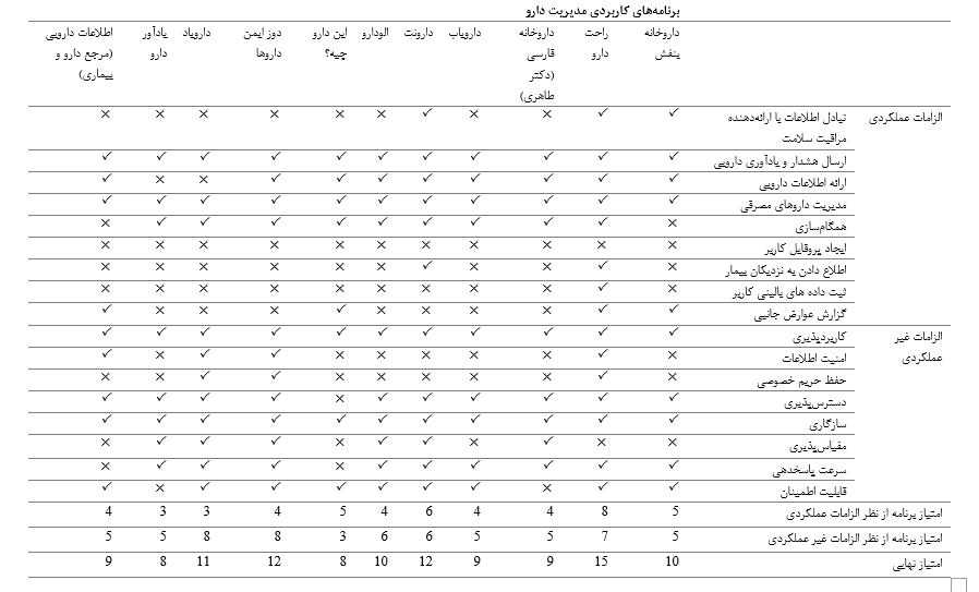 جدول4. مقایسه الزامات عملکردی و غیر عملکردی برنامه‌های کاربردی مدیریت دارو