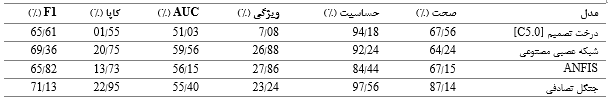 جدول 2. عملکرد مدل در مجموعه داده 1(بیمارستان سیدالشهدا)