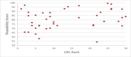 Figure 2. Readability scores of websites based on Google search ranking position.