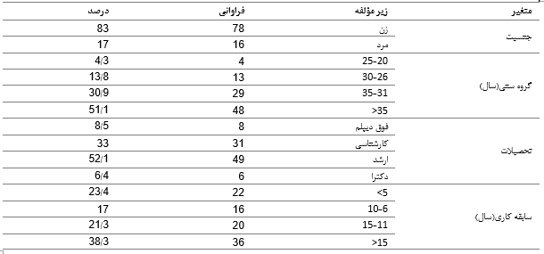 جدول 1. توزیع فراوانی مشخصات جمعیت‌شناختی کارکنان